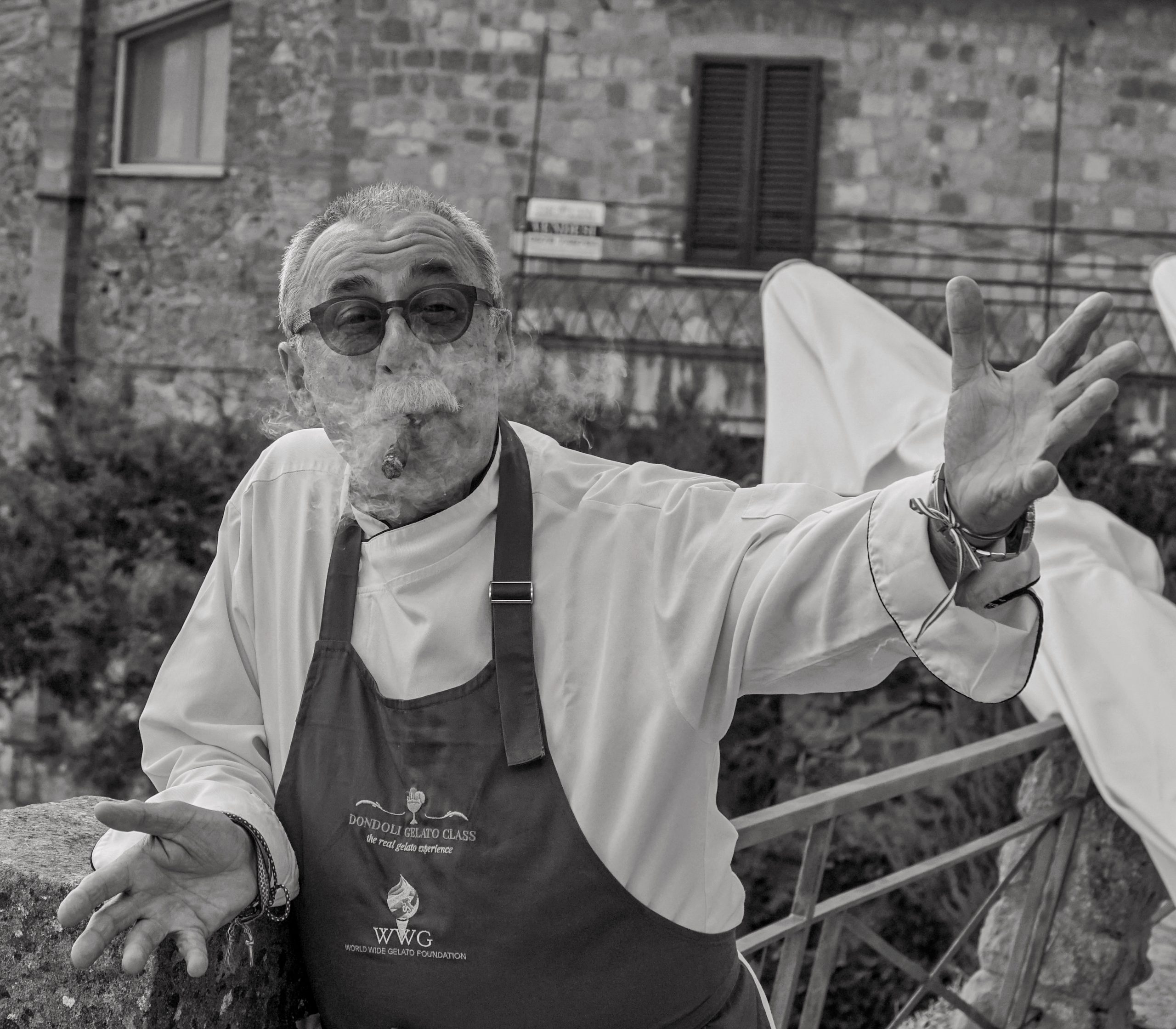 Voglio poi citare la Coltelleria Saladini, che ci ha creato gli accessori tutti da fumo e l’anice Varnelli, col misticismo tutto femminile del suo segreto custodito, al 33%, da ciascuna delle tre sorelle. Rarità assoluta il Vinsanto affumicato dell’Alta Valle del Tevere, Presidio Slow Food, di Claudio Ceccarelli, caffè Lo Scuro sapientemente tostato e miscelato e un’assoluta rarità: i bocchini di legno fatti a mano da Giulio Mancini. Gelato stellare del campione del mondo Sergio Dondoli e lo stecco al Cioccolato e kentucky di Palmiro Bruschi, già campione italiano.”