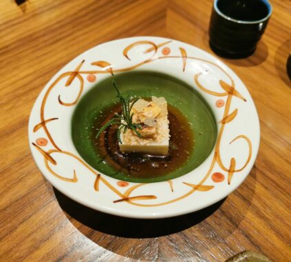 Al Plénitude, Arnaud Donckele propone una cucina francese moderna e raffinata, con piatti centrati su salse complesse e ottimi ingredienti.